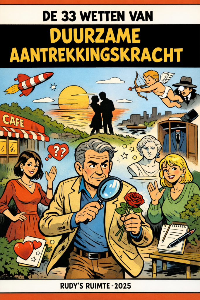 Toch kwam ik op het rare idee de ‘wetten-metafoor’ van Greene eens toe te passen op mijn boek voor mannen van 50plus. Dat gaat juist over lange termijn verbinding, dus we moeten de vergelijking met Greene niet te letterlijk nemen. Het is de vorm, het herkenbare dat ik zocht. Het is een andere manier om de inhoud tot je te nemen. Ik was zelf verbaasd over de uitkomsten die de 33 wetten van duurzame aantrekkelijkheid zijn gaan heten. Ik geef hieronder een deel van de wetten en hier rechts op de site kun je een pdf downloaden met de hele set van 33 wetten.