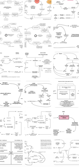 Hier heb ik een aantal van die systeemdiagrammen bij elkaar gezet. Ik wil nu weten met terugwerkende kracht wat de aanpak is, hoe je van het probleem tot zo’n diagram komt. Eigenlijk modelleer ik dus mezelf hoe ik dat toen deed. Maar dan met gebruik van AI, in de wetenschap dat AI op dit moment nog erg zwak is in het zelf kunnen tekenen van zo’n diagram, met woorden analyseren lukt daarentegen wel al meer dan aardig.