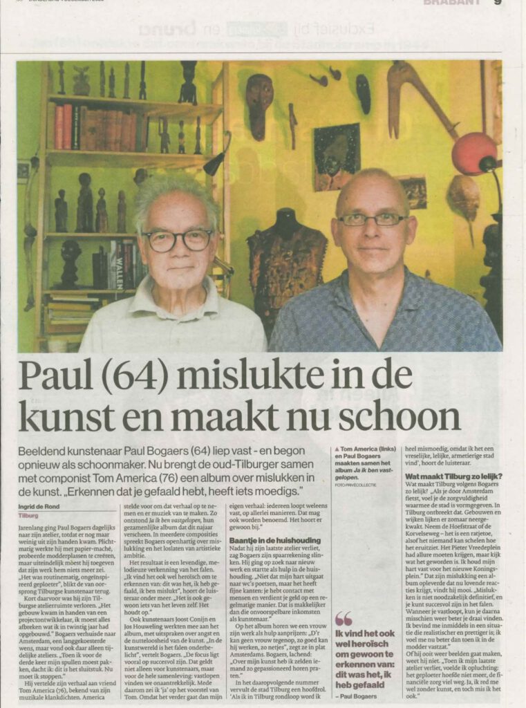 Dat trekt meteen mijn aandacht: iemand die erkent te zijn mislukt, zich daar niet voor schaamt, nu is gaan schoonmaken, en daar ook weer het mooie van ziet. Hmmm, en daar dan weer kunst over maken? Hoe zit dat eigenlijk? Mislukken en dan via een omweg alsnog succes, en dan origineler en bescheidener. Geniaal.